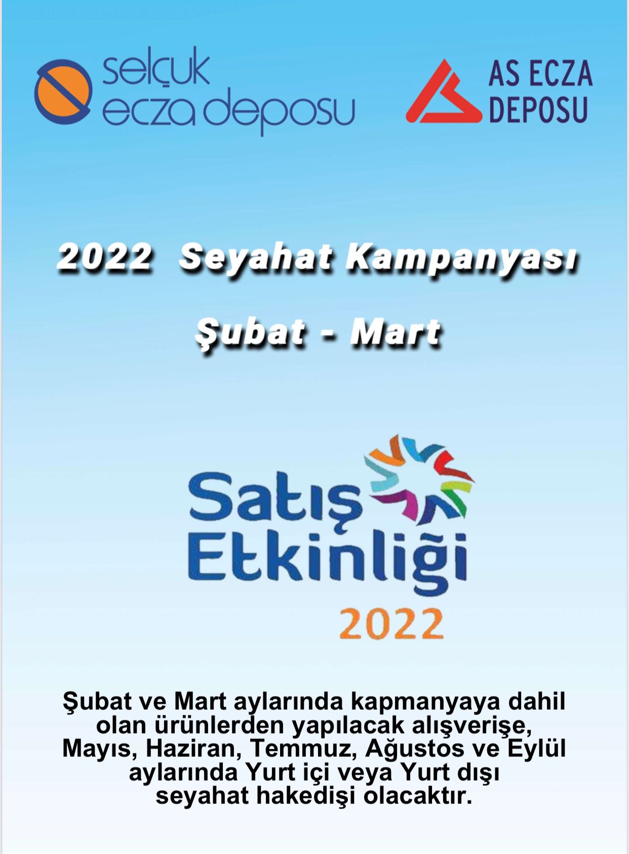Selçuk Ecza Deposu tarafından düzenlenen "2022 Seyehat Kampanyası" Satış Etkinliği hakkındaki ayrıntılı bilgilere ekteki dosyadan ulaşabilirsiniz.