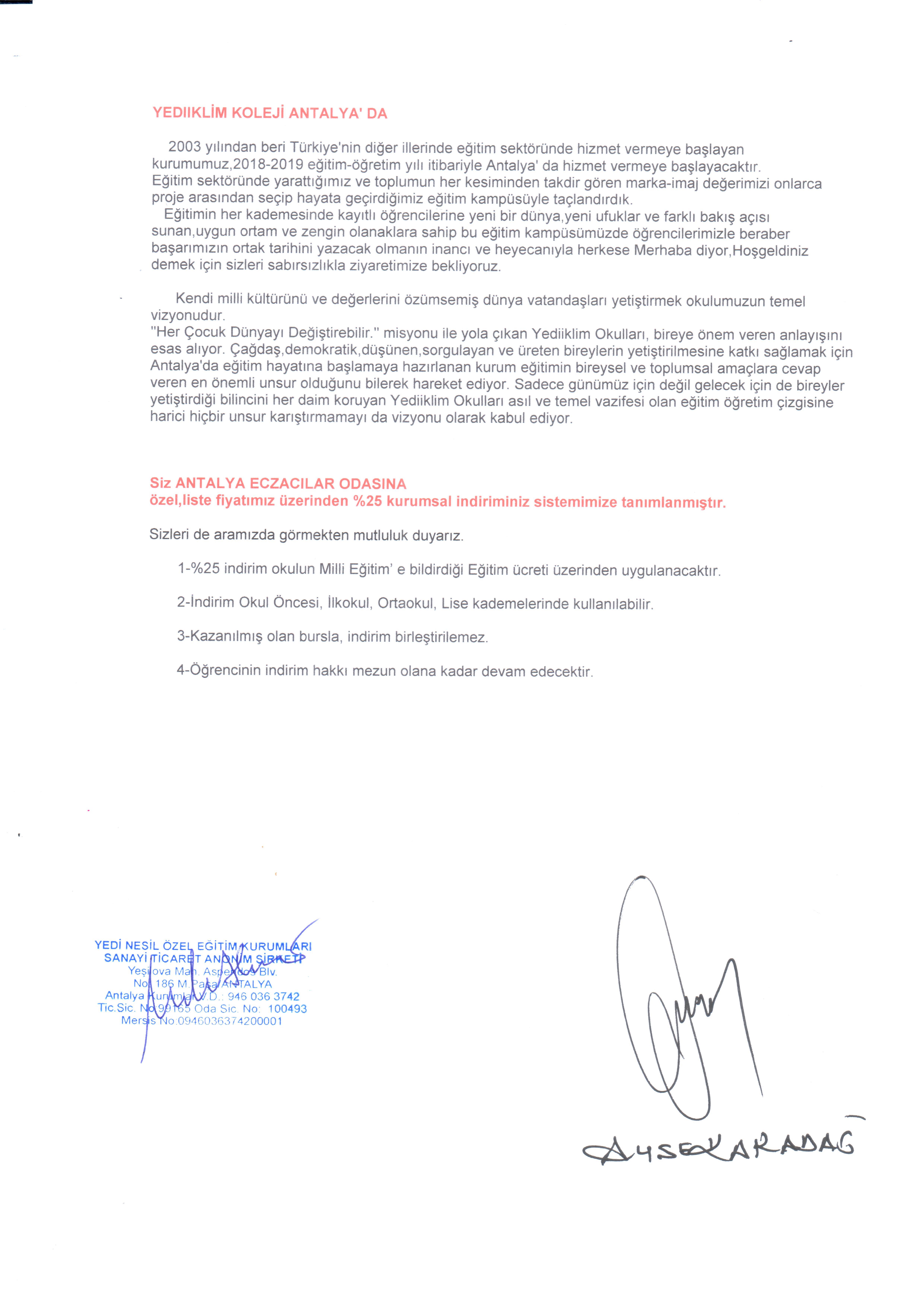 Odamızın Özel Yediiklim Koleji ile yapmış olduğu protokole istinaden meslektaşlarımıza özel %25 Kurumsal indirim sağlanmıştır.