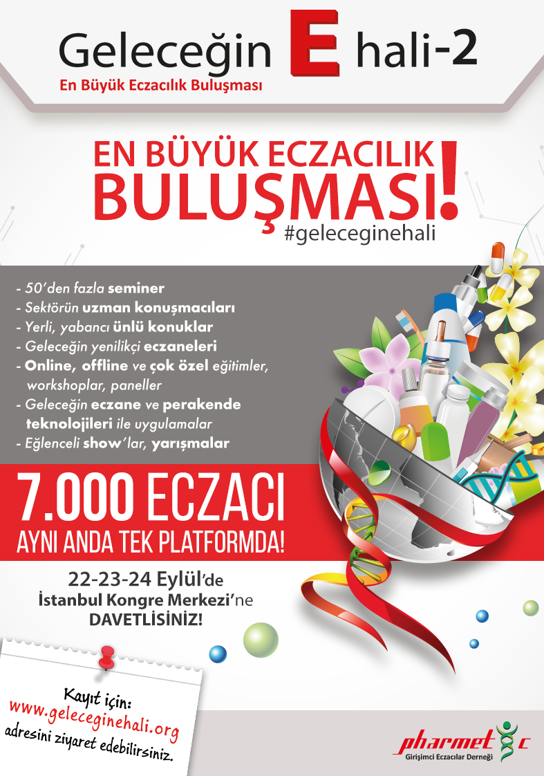 Pharmetic Girişimci Eczacılar Derneği tarafından ilki 2012 yılında gerçekleştirilen "Geleceğin E hali " Büyük Eczacılık Buluşması'nın ikincisi 22-23-24 Eylül 2016 tarihlerinde İstanbul Kongre Merkezi'nde yapılacaktır.
