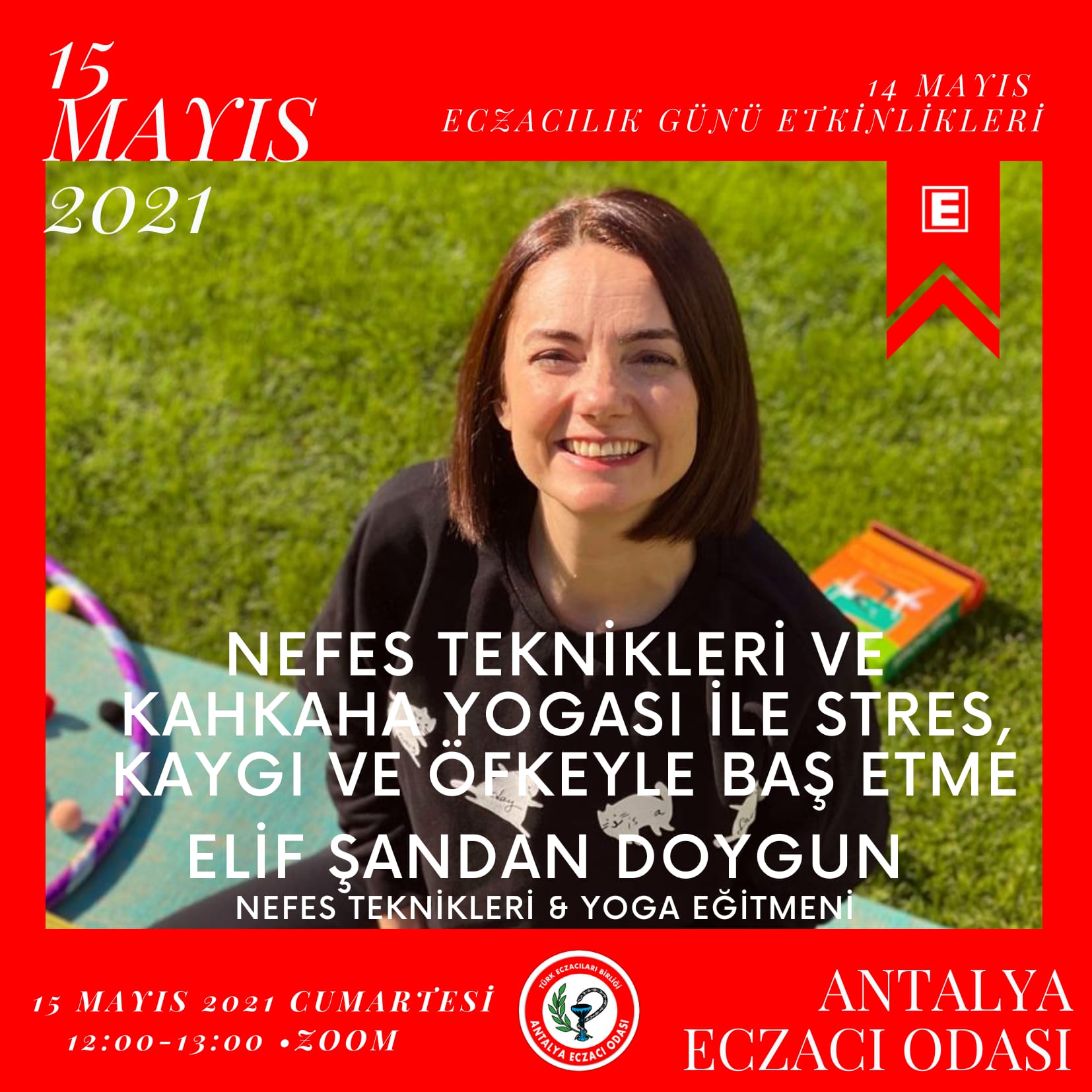 Nefes Teknikleri ve Yoga Eğitmeni Elif Şandan Doygun ile Eczacılık Günü Etkinlikleri kapsamında, 15 Mayıs Cumartesi günü, doğru nefes, nefes teknikleri ve kahkaha yogası ile stres, kaygı ve öfkeyle baş etmenin yollarını öğreneceğimiz etkinliğimizde buluşuyoruz.