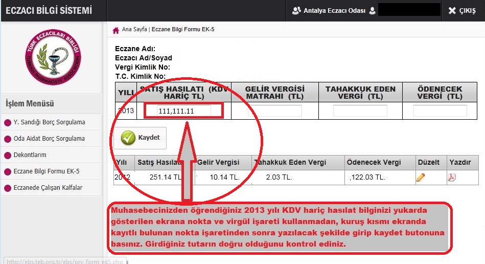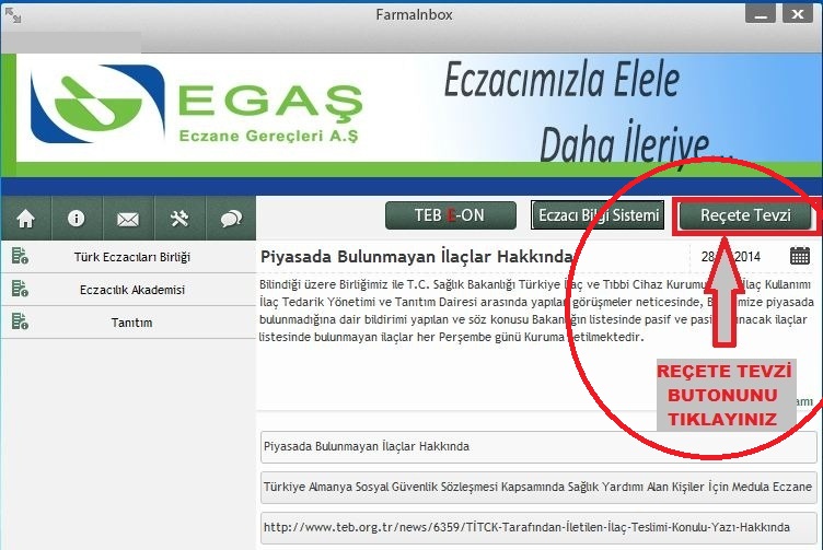 2013 YILI ECZANE SATIŞ HASILATI BİLGİLERİ FARMAİNBOX PROGRAMINDAKİ REÇETE TEVZİ EKRANINDAN GİRİŞİ YAPILIRKEN MESLEKTAŞLARIMIZIN SORUN YAŞAMAMASI VE HATALI GİRİŞLERİN ÖNLENMESİ İÇİN AŞAĞIDA AYRINTILI GÖRSELLER HAZIRLANMIŞTIR.