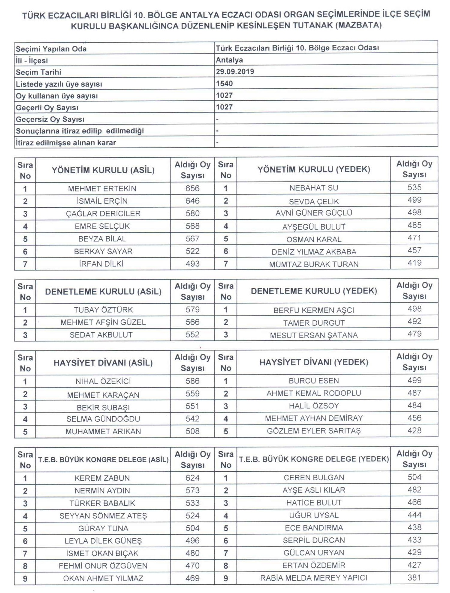 2019 yılı olağan seçimli genel kurulu kesinleşmiş seçim sonuçları ekte bulunmaktadır.