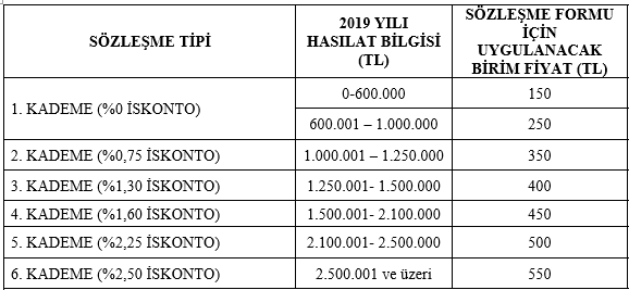 Hasılata Göre Kademe ve SGK Sözleşme Ücretleri