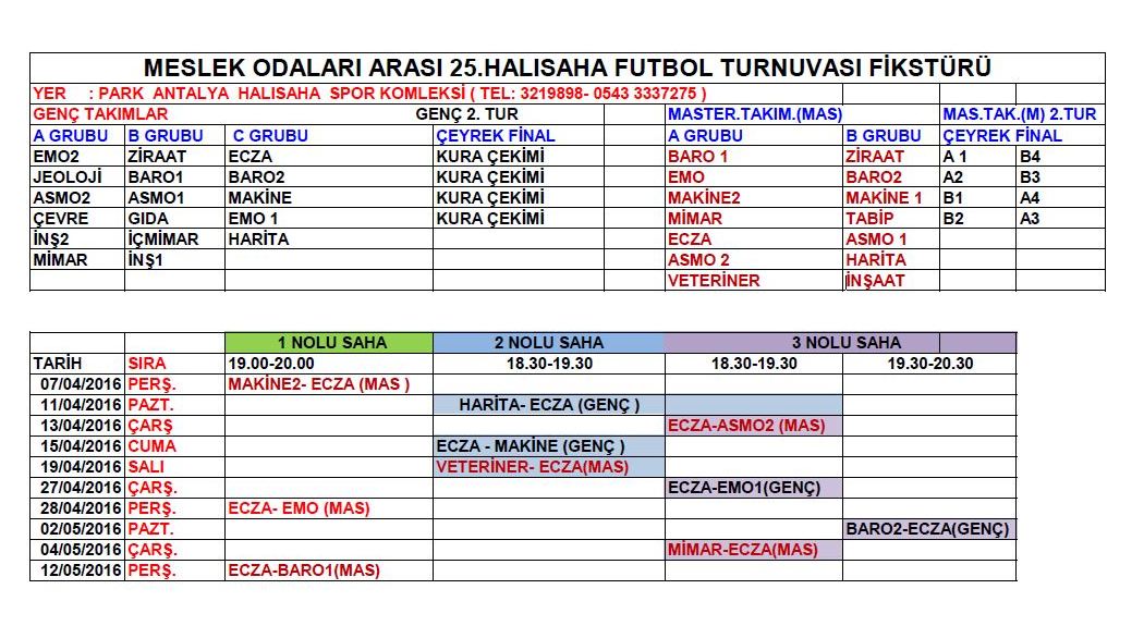 MASTER TAKIMIMIZIN İLK MAÇI 07.04.2016 PERŞEMBE (BUGÜN) SAAT 19:00'DA ECZACI-MAKİNE ARASINDA,