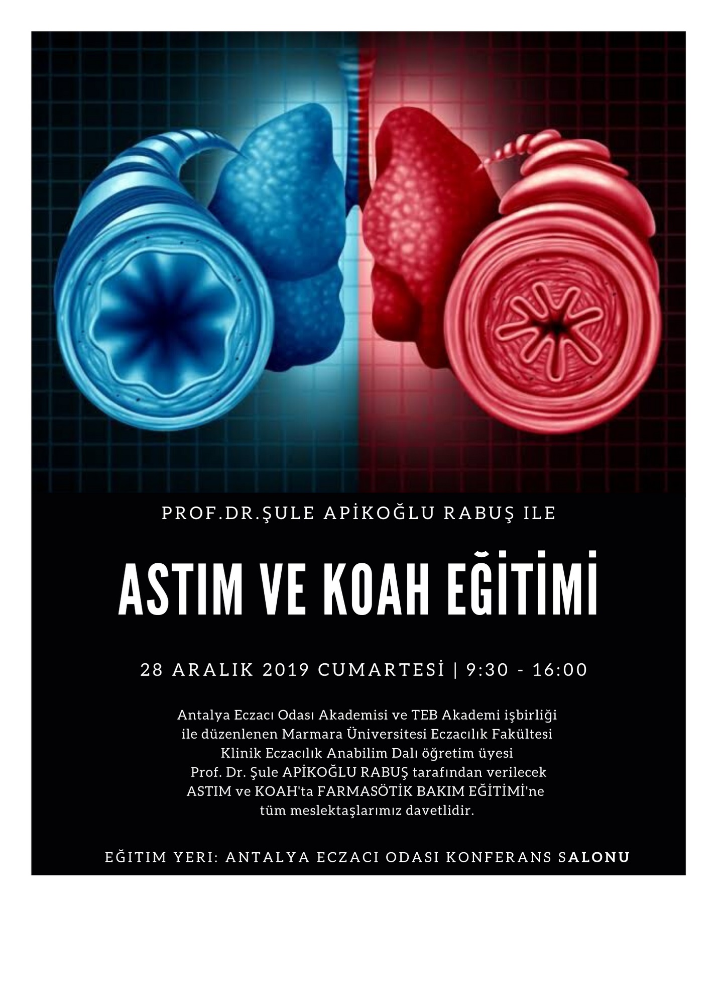 "ASTIM ve KOAH'ta FARMASÖTİK BAKIM" konulu eğitim ücretsiz olup tüm meslektaşlarımız davetlidir.