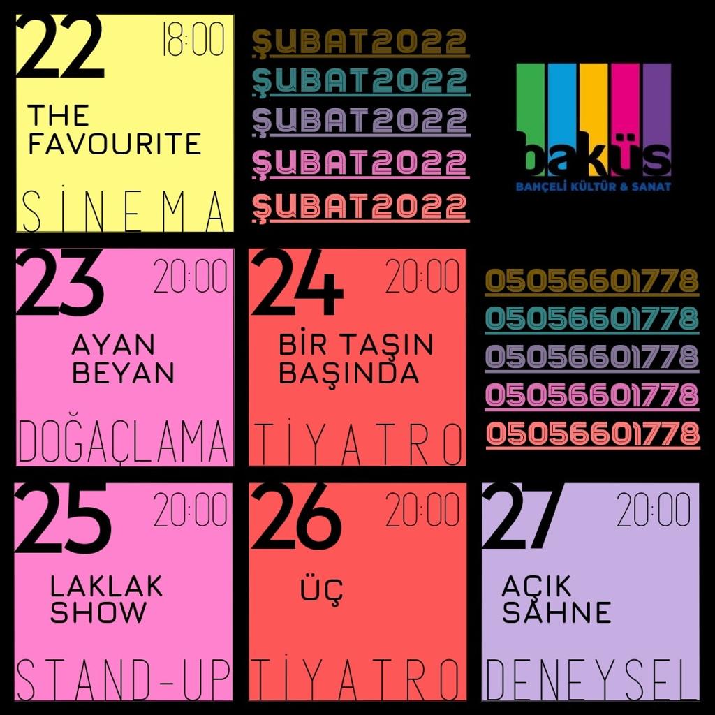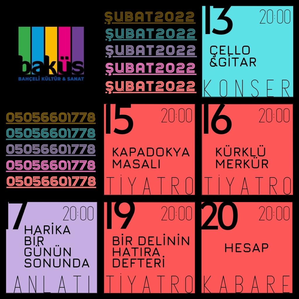 BAKÜS SAHNE TARAFINDAN SAHNELENECEK ŞUBAT AYI PROGRAMI BİLETLERİNİN REZERVASYONU AŞAĞIDAKİ İLETİŞİM NUMARASINDAN YAPILABİLMEKTEDİR.
