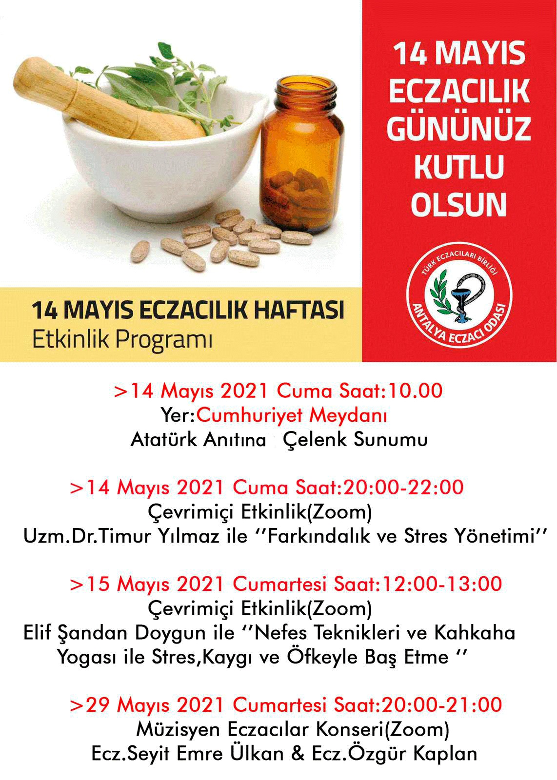 Bilimsel eczacılık eğitiminin başlangıcının 182. Yılında, 2019 Aralık ayından itibaren tüm dünyayı etkisi altına alan Covid-19 salgınıyla mücadelede sürecin en başından beri her zaman en ön safta birebir hastalarımızla temasta bulunan, canla başla fedakârca mesleğini icra eden siz değerli meslektaşlarımızın, 14 Mayıs Eczacılık Günü'nü kutlar, etkinlik programlarımızda birlikte olmaktan mutluluk duyarız.