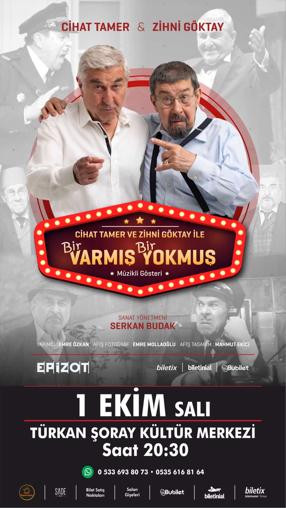 01 Ekim 2024 Salı günü Cihat TAMER ve Zihni GÖKTAY tarafından sahnelenecek olan "Bir Varmış Bir Yokmuş !" isimli müzikal gösteri;