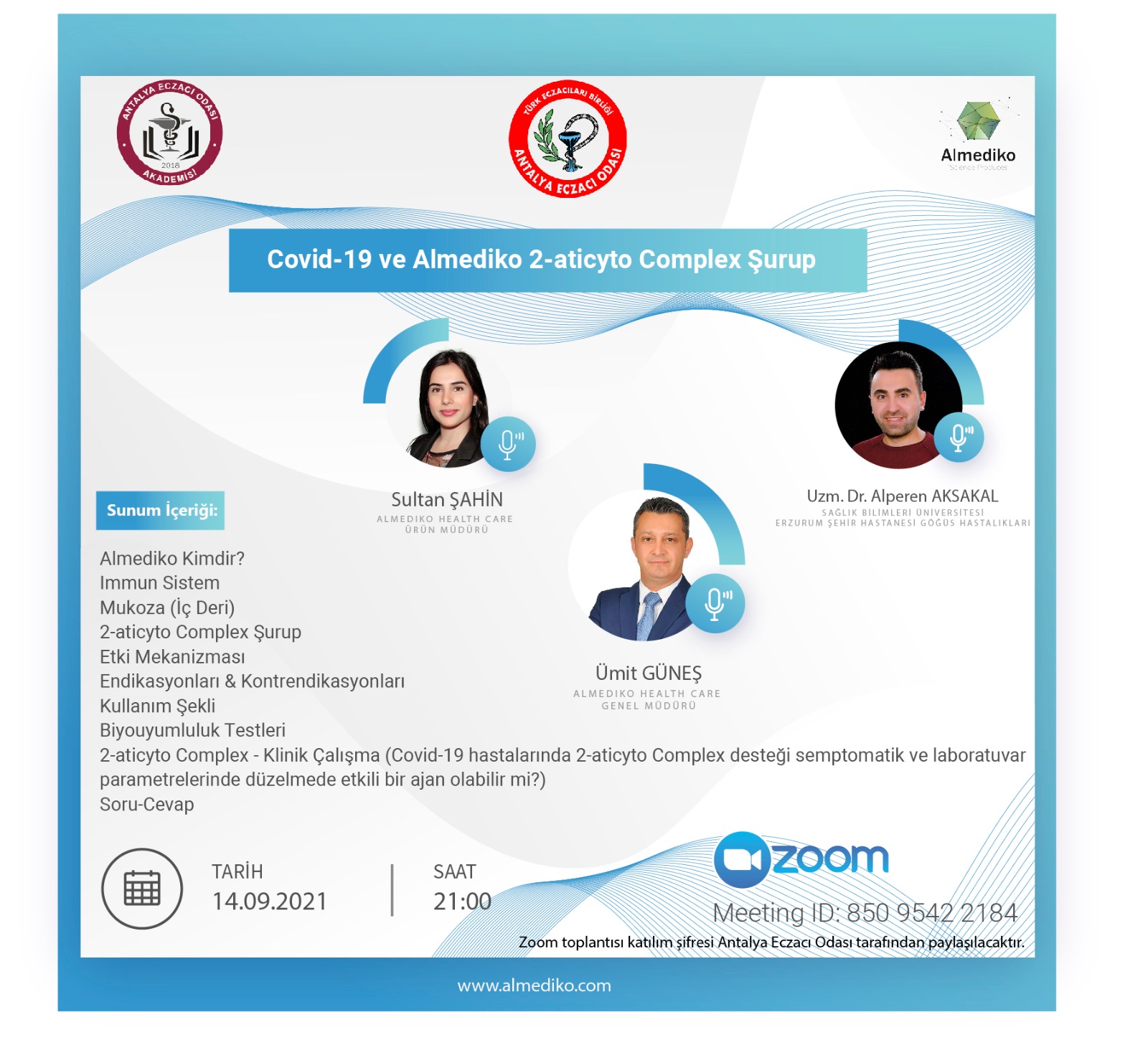 Akademimiz ve Almediko firması iş birliği ile düzenlenen ''Covid-19'da destek tedavilerde yeni yaklaşımlar'' hakkındaki çevrimiçi eğitime davetlisiniz.