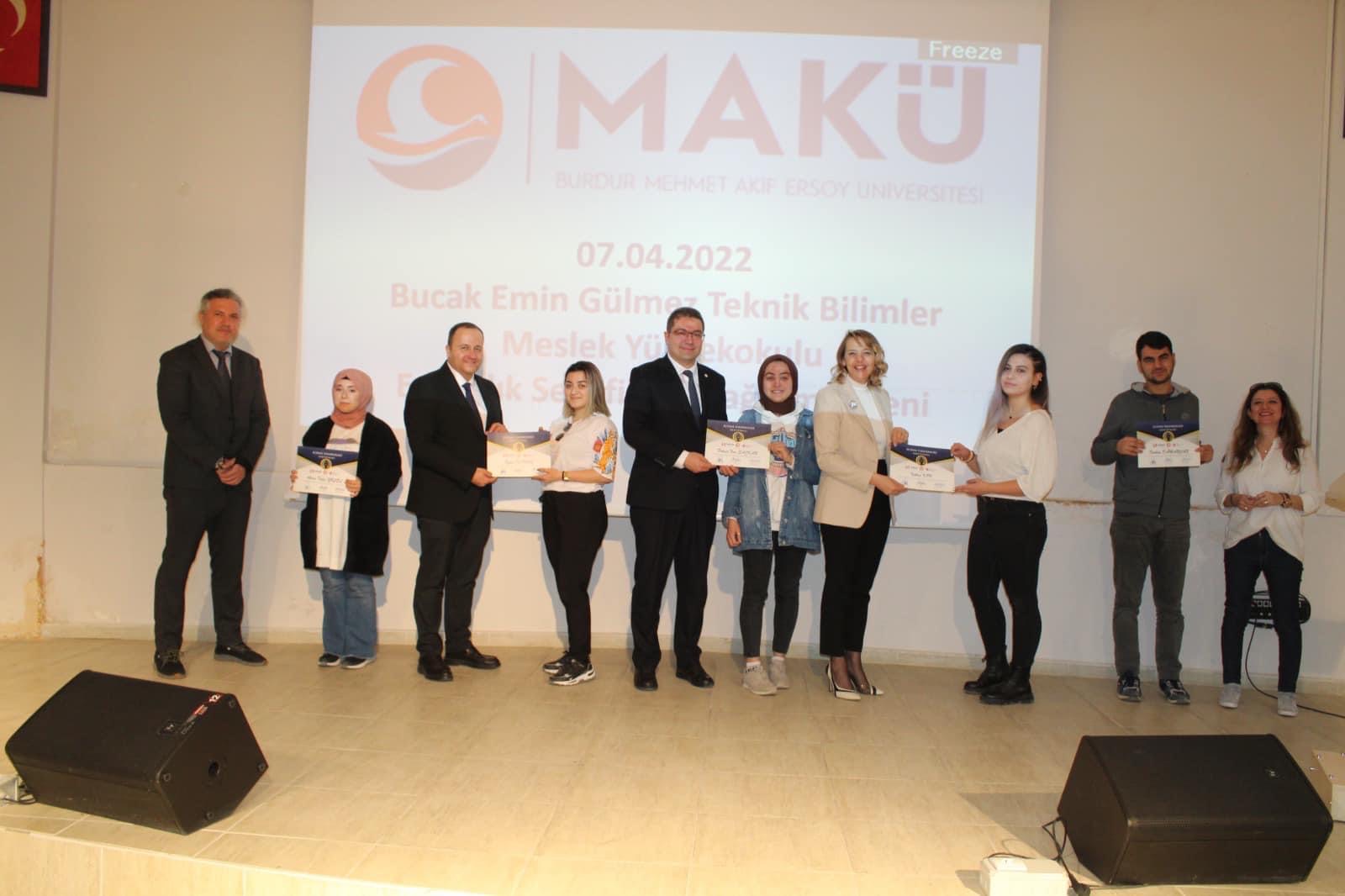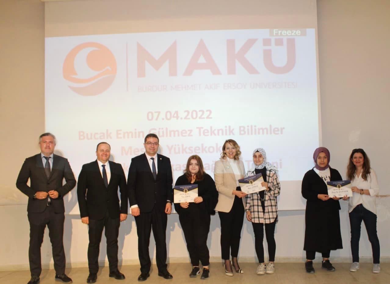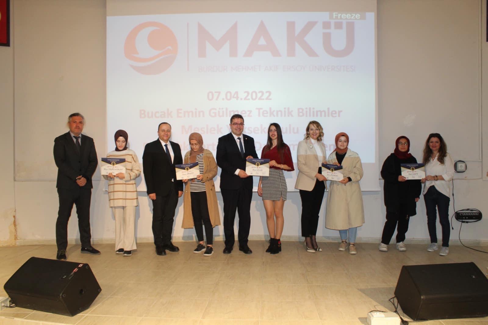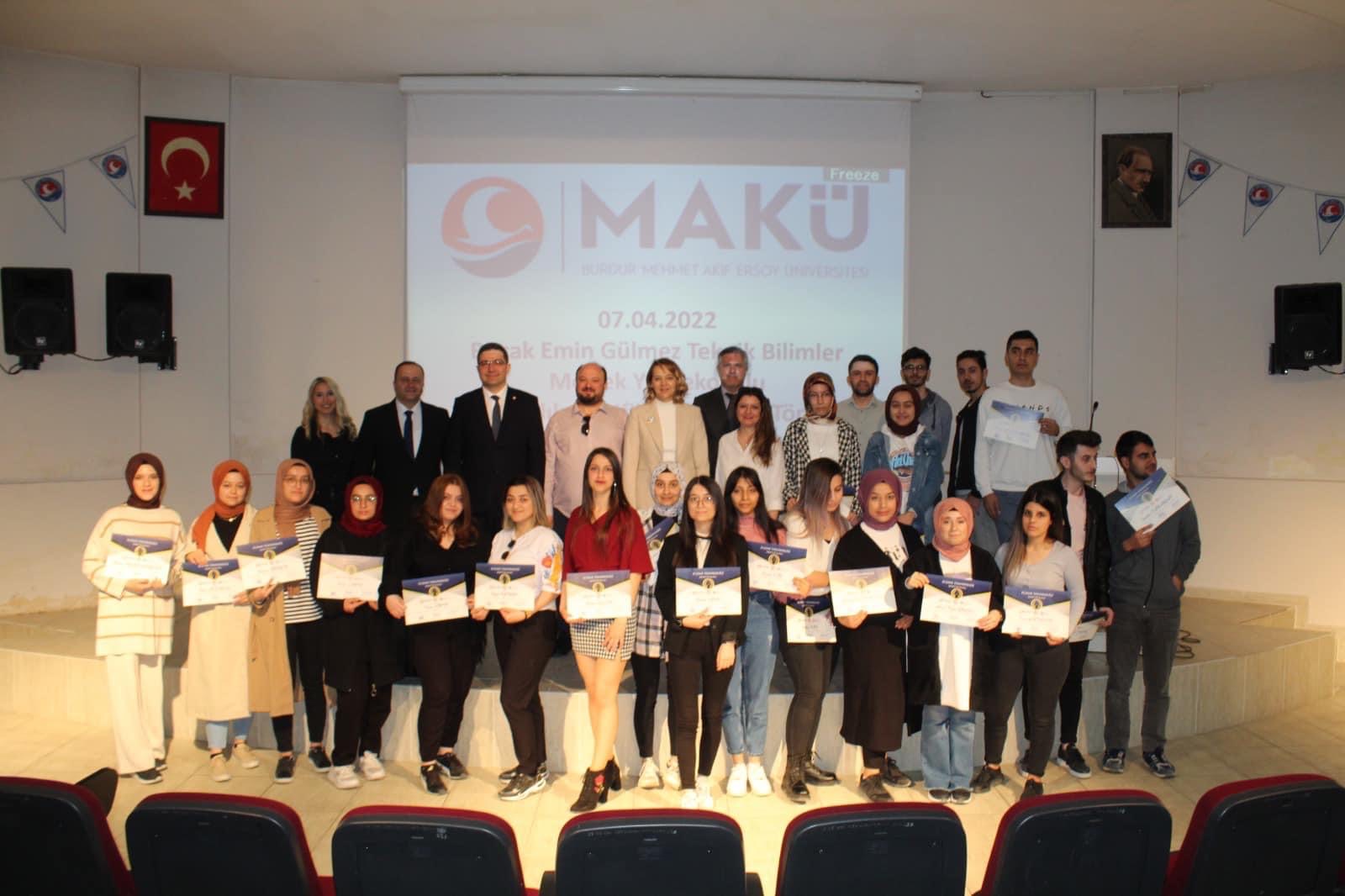 Antalya Eczacı Odası Akademi üyelerimiz, Lokman Ecza Deposu Eğitim Müdürlüğü ve Mehmet Akif Ersoy Üniversitesi Akademisyenleri tarafından verilen 60 saatlik teorik eğitim yanı sıra minimum 2 gün eczanelerde, 1'er gün Lokman Ecza Deposu uygulamalı eğitim almak suretiyle programa katılan üniversite öğrencileri “Eczane Teknikerliği” sertifikalarını almaya hak kazanmışlardır.MAKÜ Bucak Emin Gülmez Tek.Bil.Meslek Yüksekokulu konferans salonunda 7 Nisan'da düzenlenen törenle Antalya Eczacı Odası, Lokman Ecza Deposu ve Burdur Mehmet Akif Ersoy Üniversitesi işbirliği ile gerçekleştirilen “ECZANE TEKNİKERLİĞİ SERTİFİKA” Programına katılan MAKÜ öğrencilerine Başkanımız Uzm. Ecz. İsmail Erçin, Genel Sekreterimiz Ecz. Mustafa Çelebi, Lokman Ecza Deposu Yönetim Kurulu Başkanı Ecz. Hatice Öz, Lokman Ecza Deposu İnsan Kaynakları ve Eğitim Müdürü T.Yasin Taş, MAKÜ Bucak Emin Gülmez TBMYO Müdürü Dr. Öğr. Üyesi Melike Şişeci Çeşmeli , Müdür Yardımcısı Öğr. Gör. Kazım Kumaş, Öğr. Gör. M. Mürsel Eskici ve öğretim elemanlarının katılımı ile birlikte eğitimi başarı ile tamamlayan öğrencilere sertifikalar teslim edilmiştir.