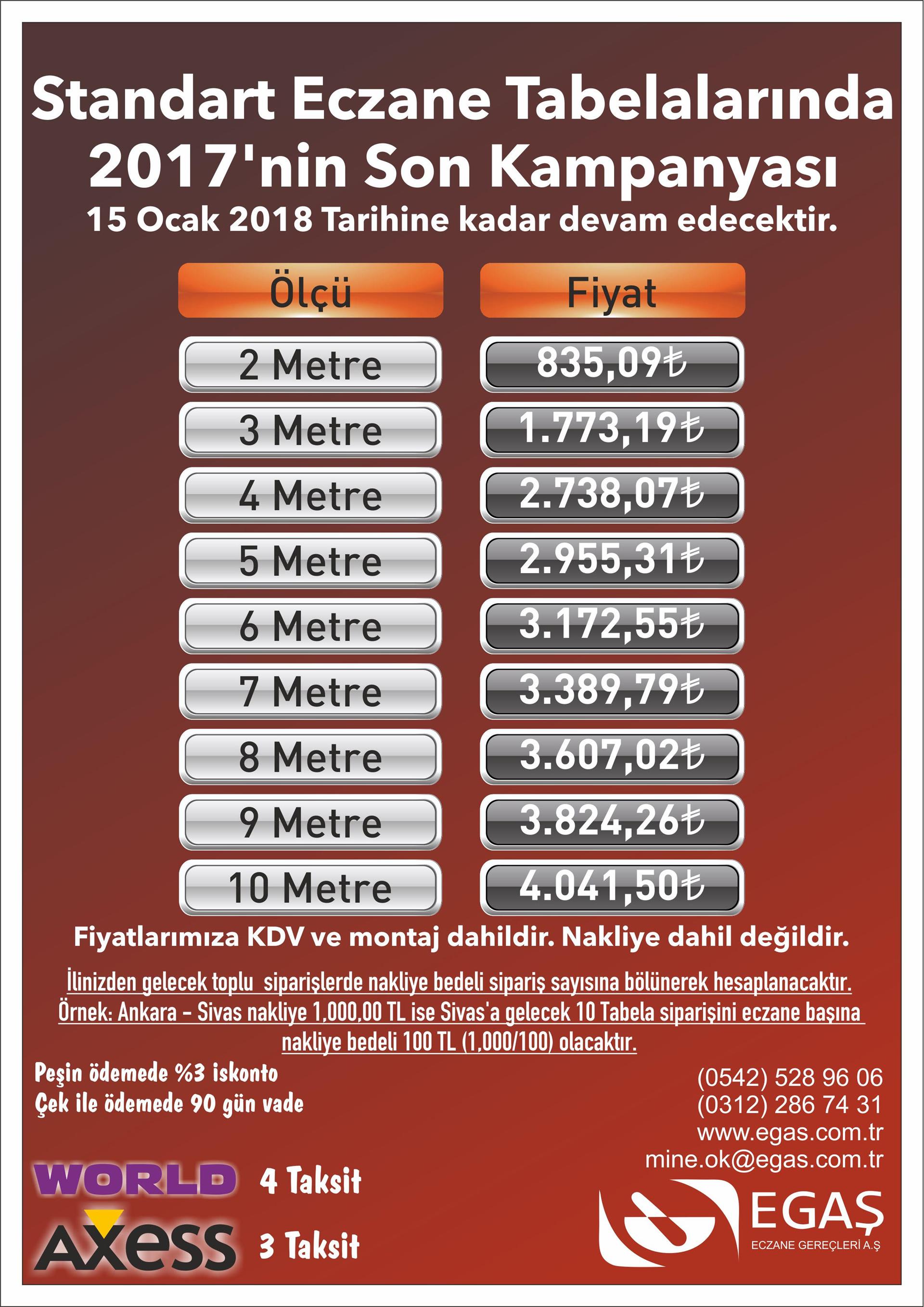 Egaş Eczane Gereçleri A.Ş. tarafından Standart Tabela satış kampanyası ile ilgili tarafımıza bildirilen detaylı bilgi ektedir.