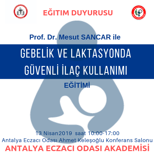 Gebelik ve laktasyon döneminde ilaç kullanımı ile ilgili bilgilerimizi güncelleyeceğimiz meslek içi eğitimimiz 13 Nisan 2019 Cumartesi günü saat 10:00'da Odamızın yenilenerek hizmete giren Meltem Hizmet Binasındaki Ahmet Keleşoğlu Konferans Salonu'nda gerçekleşecektir.