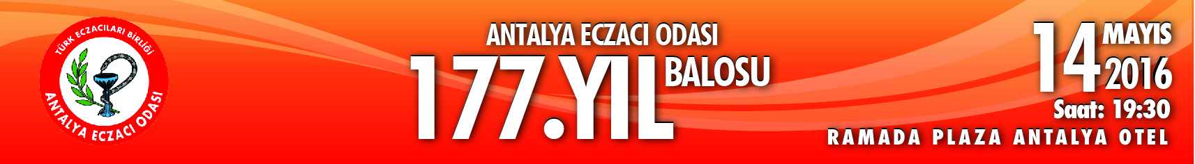 BİLİMSEL ECZACILIĞIN 177. YILDÖNÜMÜ NEDENİ İLE DÜZENLENMİŞ OLAN "GELENEKSEL ECZACILIK BALOSU" 14 MAYIS 2016 CUMARTESİ GÜNÜ SAAT 19.30 'DA RAMADA PLAZA ANTALYA OTEL 'DE GERÇEKLEŞECEKTİR.