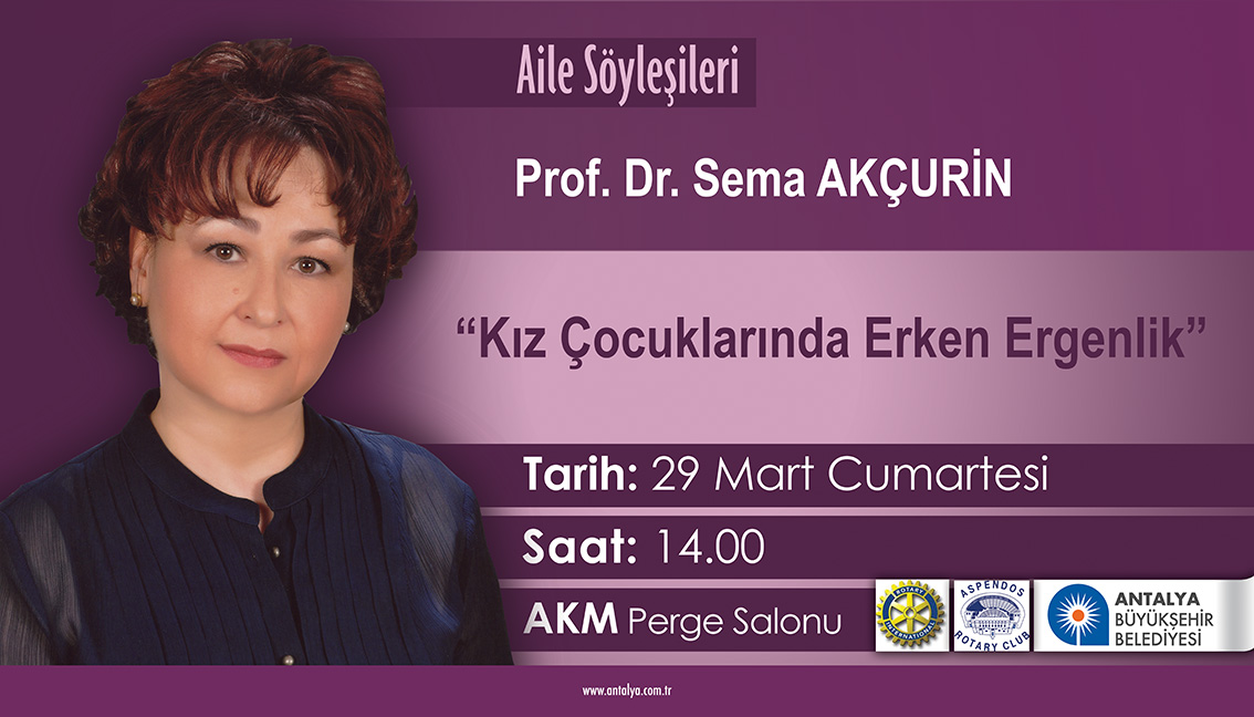 ASPENDOS ROTARY KULÜBÜ TARAFINDAN AİLE SÖYLEŞİLERİ KAPSAMIDA PROF. DR. SEMA AKÇURİN İN ANLATIMIYLA "KIZ ÇOCUKLARINDA ERKEN ERGENLİK" KONULU BİR PANEL DÜZENLENMİŞTİR.