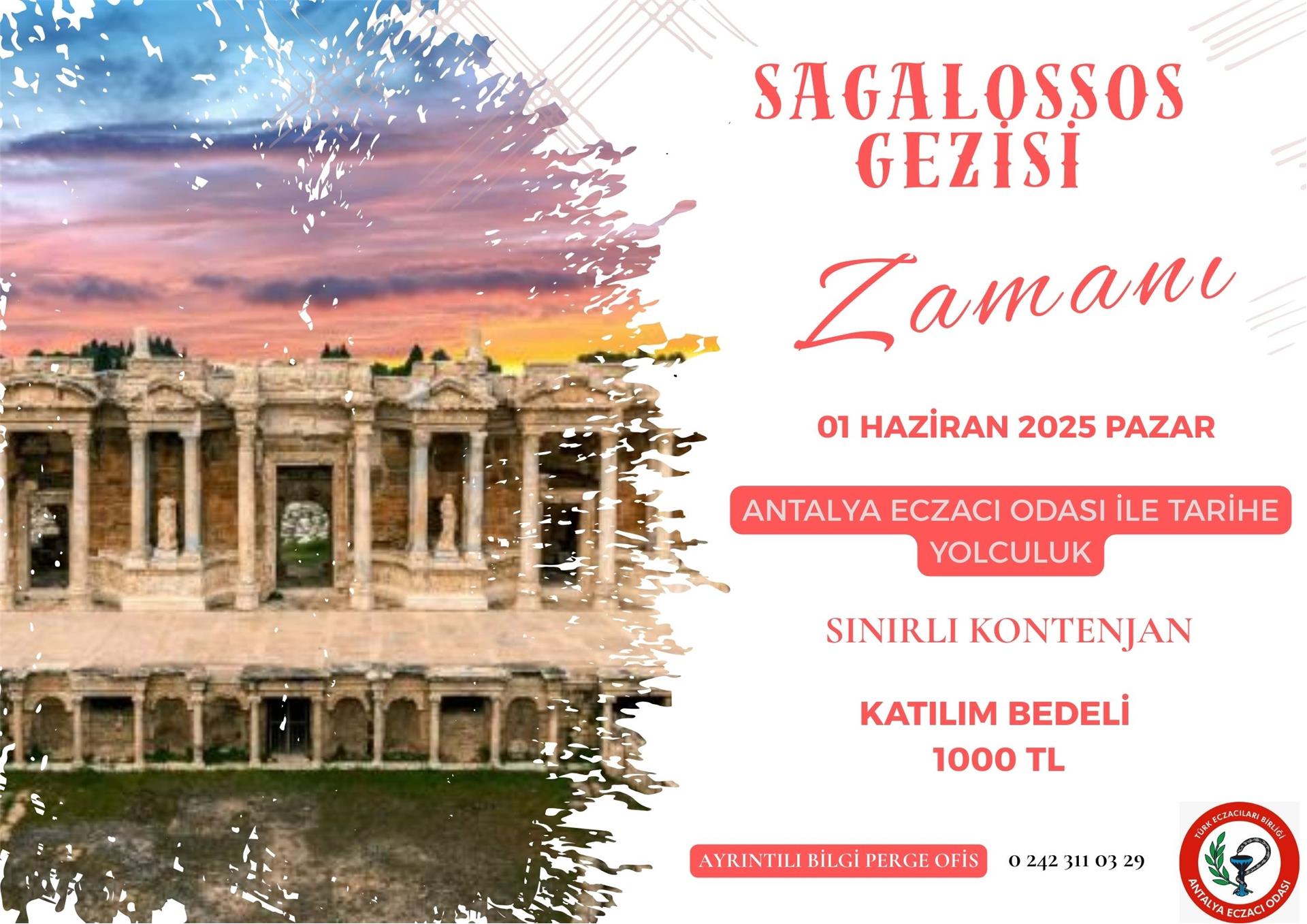 01.06.2025 Pazar günü gerçekleştirmeyi planladığımız ; İlk yerleşim izleri 12 bin yıl önceye dayanan Sagalassos Antik Kentinde Siz Değerli Eczacılarımız ile birlikte muhteşem bir tarihe yolculuk edeceğiz.