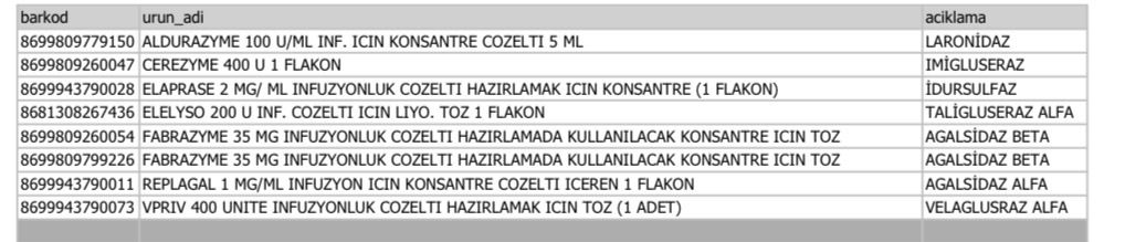 Bu düzenleme ile aşağıda yer alan etkin maddeleri içeren enzim ihtiva eden müstahzarlar içeren reçeteler sıralı dağıtım kapsamına alınmıştır: