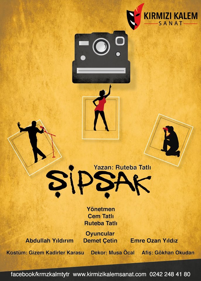 KIRMIZI KALEM TİYATRO TOPLULUĞU TARAFINDAN SAHNELENEN "ŞİPŞAK" İSİMLİ OYUNA BERABER GİDİYORUZ. 11 ARALIK 2015 GÖSTERİSİNİ BİRLİKTE İZLEMEK İSTEYEN MESLEKTAŞLARIMIZ BİLETLERİ ODA SEKRETERYALARIMIZDAN ALABİLİRLER.