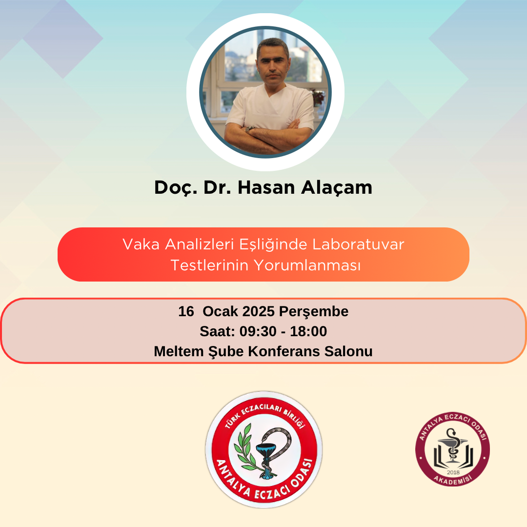 16 Ocak 2025 tarihinde yüz yüze yapılacak olan Doç. Dr. Hasan Alaçam ile “Vaka Analizleri Eşliğinde Laboratuvar Testlerinin Yorumlanması” konulu sınırlı kontenjanlı eğitimimiz için odamıza özel kişi başı 1.000 TL eğitim ücreti belirlenmiştir.