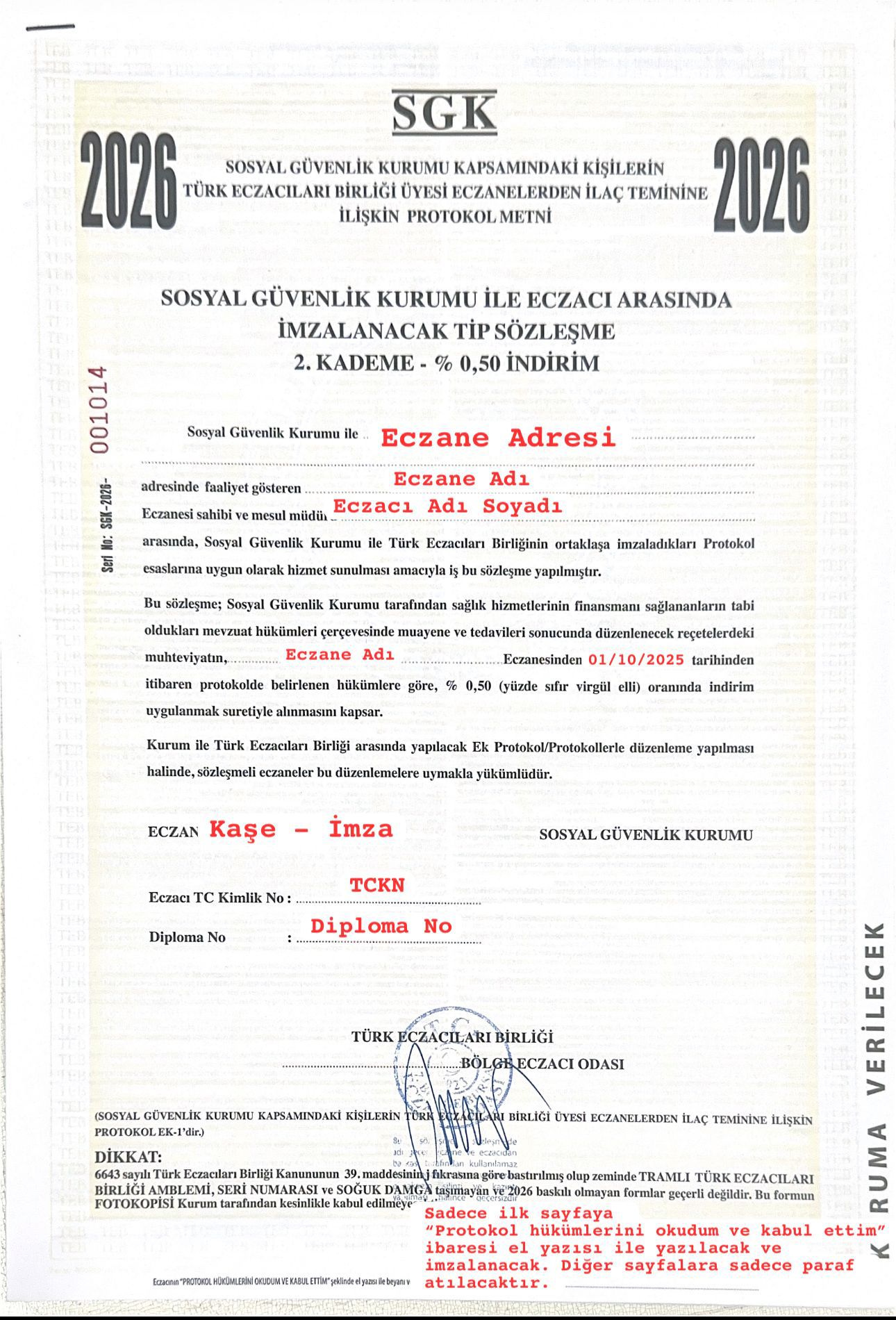 3-İlk kez sözleşme imzalayacak olan eczacıların protokolün 7.12. maddesindeki evraklarla Kuruma bizzat başvuru yapmaları gerekmektedir.