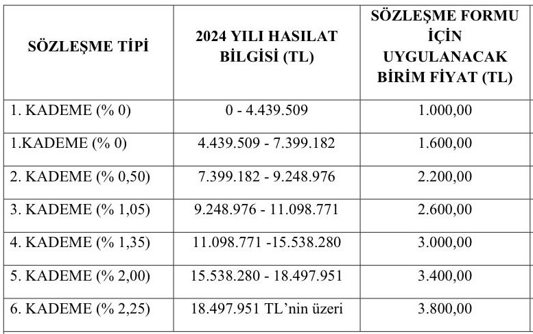 Hasılata Göre Kademe ve SGK Sözleşme Ücretleri