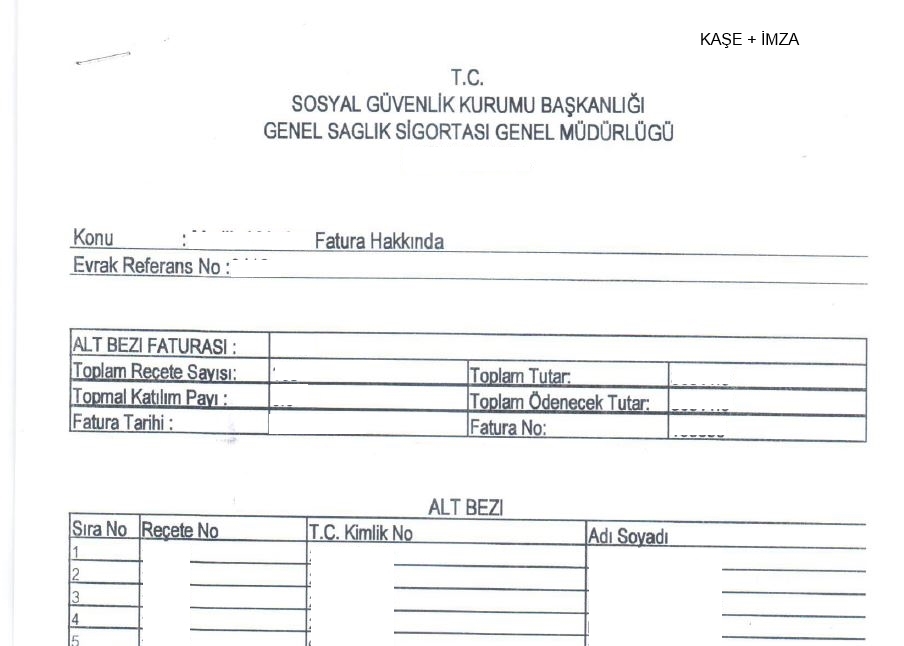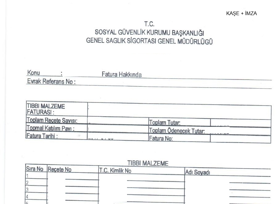 Medikal Fatura Kesim Şifresi Örneği için tıklayınız.